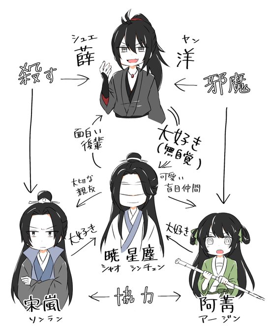 アニメ 陳情 令 相関 図- Contents 1 『陳情令』1話あらすじネタバレ! 魏無羨は実は莫玄羽で16年ぶりに藍忘機と再会する! 11 陳情令1話あらすじネタバレ|魏無羨の死; 陳情令の女性陣本当に美人ばっかり、、、中国の芸能人(女性)の顔の良さは異常。羨ましい。 — 月_山茶花 (@koushikiyou001) 陳情令はな、中の人がみんな良いんだが中でも雲夢江氏の男子がな!